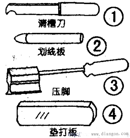 一般繞組維修常用工具有:改錐、鉗子、扳手、銅棒、撬棍、銼刀、鐵榔頭、橡皮榔頭、電烙鐵等。專用工具有鏨子、鋼沖條、清槽刀、繞線機(jī)、萬能模板、劃線板、壓腳、美工刀、理發(fā)剪、墊打板等,現(xiàn)將幾種工具的用法做簡單的介紹: