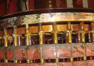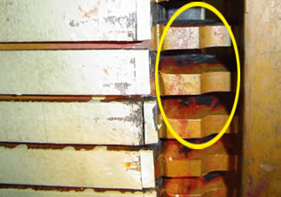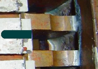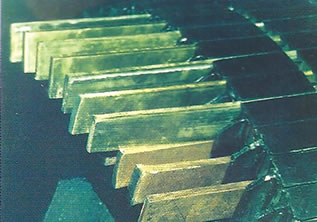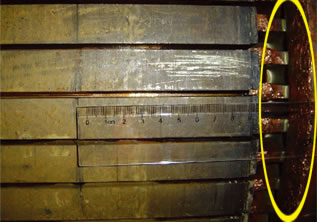 | 采用二種不同材質(zhì)(黃銅和含銀紫銅)籠條可以消除籠條與短路環(huán)在電機啟動時大電流應(yīng)力分布條件,防止籠條因大應(yīng)力發(fā)生時產(chǎn)生斷條故障 | 短路環(huán)與籠條發(fā)熱導(dǎo)至轉(zhuǎn)子鐵心齒壓片斷裂掉出刮傷定子端部線圈 |