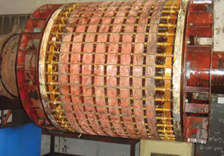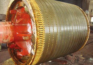 | 籠條加工成扁擔(dān)形 | 上大型車床對轉(zhuǎn)子表面進行車削加工 |