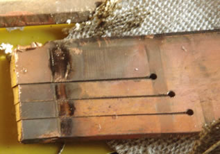 7、控制導(dǎo)條與端環(huán)焊接溫度和時間,采用45%銀銅整體中頻焊接。
