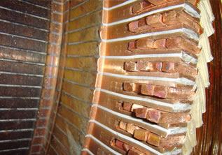 機(jī)車牽引電動(dòng)輪在戶外工作季節(jié)的日溫差大,運(yùn)行環(huán)境惡劣,且要求耐振動(dòng)、耐腐蝕。耐潮濕,因此,對(duì)電機(jī)的絕緣要求特高。另牽引直流電動(dòng)機(jī)要求過(guò)載力矩大,調(diào)速范圍廣,對(duì)過(guò)電壓的承受和匝間絕緣要求特高。連細(xì)節(jié)的工藝,如換向器和升高片的焊接都有特殊要求,總之對(duì)牽引電機(jī)修復(fù)要求苛刻,每一細(xì)小環(huán)節(jié)均需經(jīng)驗(yàn)老道的專家、工程師把關(guān),因此對(duì)此類電機(jī)的修復(fù)除裝備精良,還必須具有科學(xué)、慎重的工藝方案,才能滿足此類電機(jī)的特殊要求。