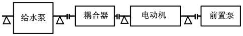 某發(fā)電公司一臺(tái)300MW機(jī)組的鍋爐給水泵,系沈陽(yáng)水泵廠生產(chǎn)的CHTC 516S-2型泵,流量:573m3/h,揚(yáng)程:2260m,額定最高轉(zhuǎn)速:5600r/min,配哈爾濱電機(jī)廠生產(chǎn)的YKS710-4型異步電動(dòng)機(jī),額定功率:5500KW,額定電壓:6000V,額定電流:631A,額定轉(zhuǎn)速:1491r/min,設(shè)備允許振動(dòng)小于80mm。該給水泵組由給水泵、耦合器、電動(dòng)機(jī)、前置泵聯(lián)成軸系,具有轉(zhuǎn)速與流量可調(diào)功能,其結(jié)構(gòu)簡(jiǎn)圖如下: