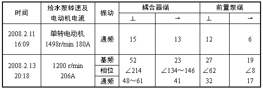 3.1 查現(xiàn)場(chǎng)記錄發(fā)現(xiàn)在電動(dòng)機(jī)振動(dòng)增大時(shí),相鄰的設(shè)備耦合器和前置泵振動(dòng)始終很小,可以確定為電動(dòng)機(jī)自身的設(shè)備缺陷;