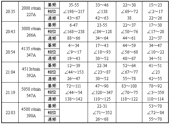 注:振動(dòng)幅值單位:微米,振動(dòng)相位單位:度